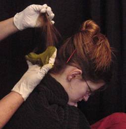 + Chia tóc ra nhiều phần nhỏ để dễ dàng bôi hỗn hợp